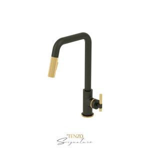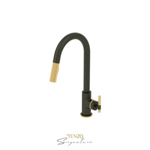 Tenzo Single-handle kitchen faucet Bellacio with pull-down & 2-Function hand shower matte black / brushed gold BE130-F-MB-BG