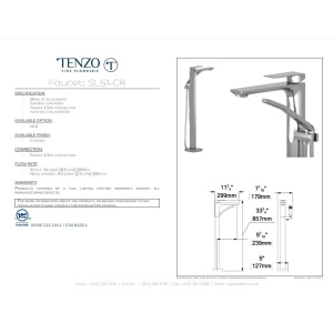 Tenzo Slick Single Hole Bathroom Sink Faucet W Overflow Drain Chrome