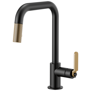 Litze Kitchen Faucet with Pulldown Spray Square Spout and Industrial Handle – Matte Black/Luxe Gold 63054LF-BLGL Brizo
