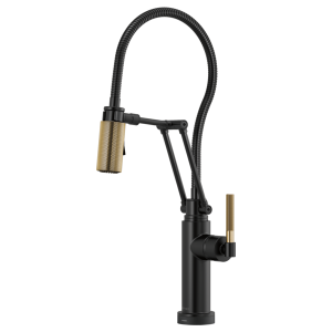 Litze SmartTouch Articulating Kitchen Faucet with Industrial Handle – Matte Black/Luxe Gold 64244LF-BLGL Brizo
