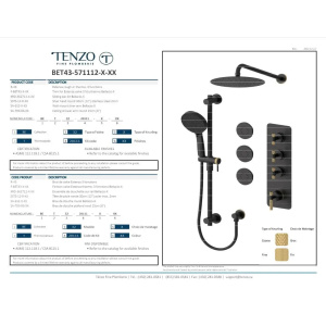 Tenzo Bellacio BET43-571112-C Thermostatic Shower Faucet 3 Function