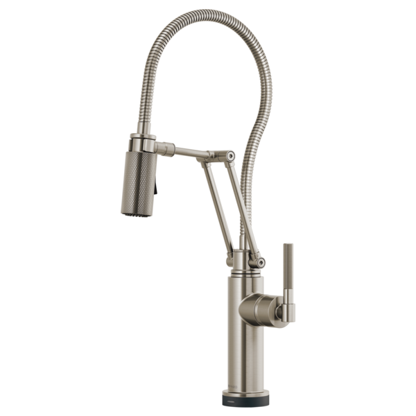- Dual-jointed articulating arm with finished, semi-flexible metal hose