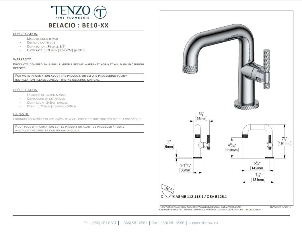Upgrade your bathroom with the Tenzo Bellacio C Single Hole Bathroom Sink Faucet. Made from solid brass, this faucet is built to last and looks great in any setting. It features a smooth-operating ceramic cartridge and a standard 3/8″ connection for easy installation. With a flow rate of 4.5 liters per minute (1.2 gallons per minute) at 60psi, you’ll get the perfect water pressure every time. Plus, the pop-up drain with overflow makes it even more convenient. The Tenzo Bellacio C is a stylish and reliable choice for your bathroom.