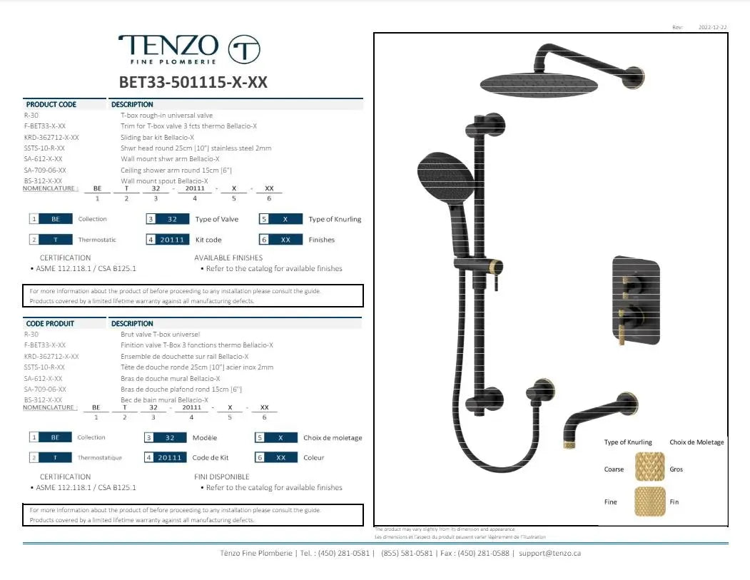 - T-Box valve trims Bellacio pres. bal. 3 functions diverter
