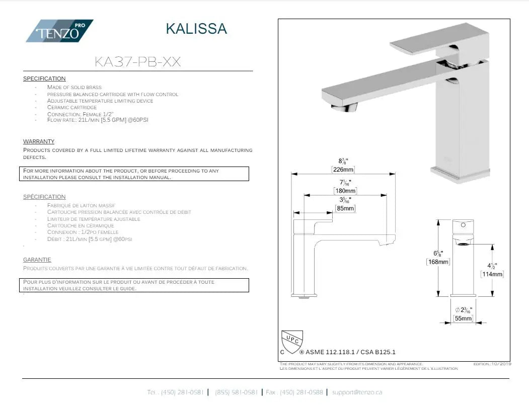 Made of solid brass | Balanced pressure valve | Ceramic cartridge | 1/2” female connection | Flow rate: 25.5L/min [6.7 gpm]@60psi | Cartridge : CAR-HY-PB-JH04BD | Limited lifetime warranty | Made of solid brass | Balanced pressure valve | Ceramic cartridge | 1/2” female connection | Flow rate: 25.5L/min [6.7 gpm]@60psi | Cartridge : CAR-HY-PB-JH04BD | Limited lifetime warranty | Technical sheet: DS_KA37-PB-XX.pdf | Print