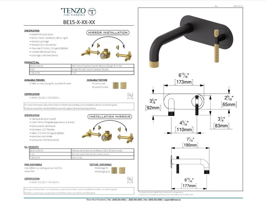 Tenzo Signature Bellacio C Wall Mount Bathroom Faucet Knurl Design
