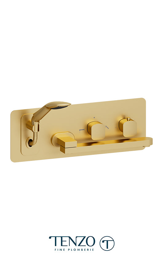 Tenzo Wall mount tub faucet with swivel spout Delano brushed gold DET74-BG