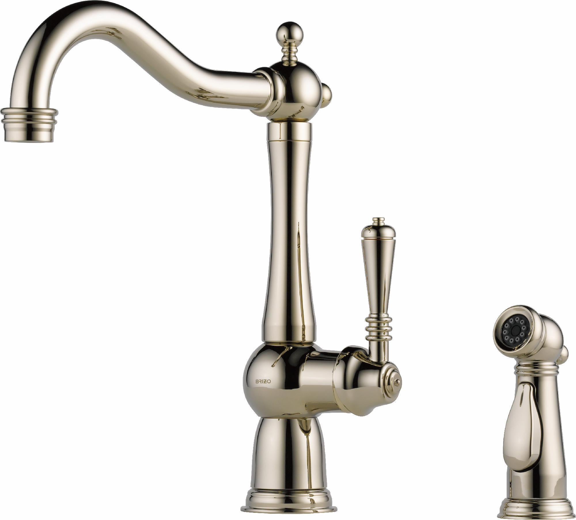 Elegant, modern and enduring, this Tresa Single-Handle Side Sprayer Kitchen Faucet in Polished Nickel bridges past and present. Tresa reunites us with the past by taking design elements from the earliest of European fountains. Its traditional yet timeless styling, enhanced by a simple bend in the neck, makes it a welcome presence in almost any room.